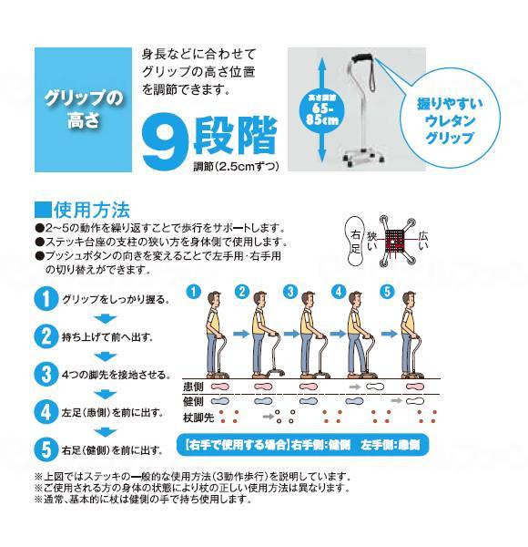 ○ステッキのグリップをしっかり握ってご使用ください。