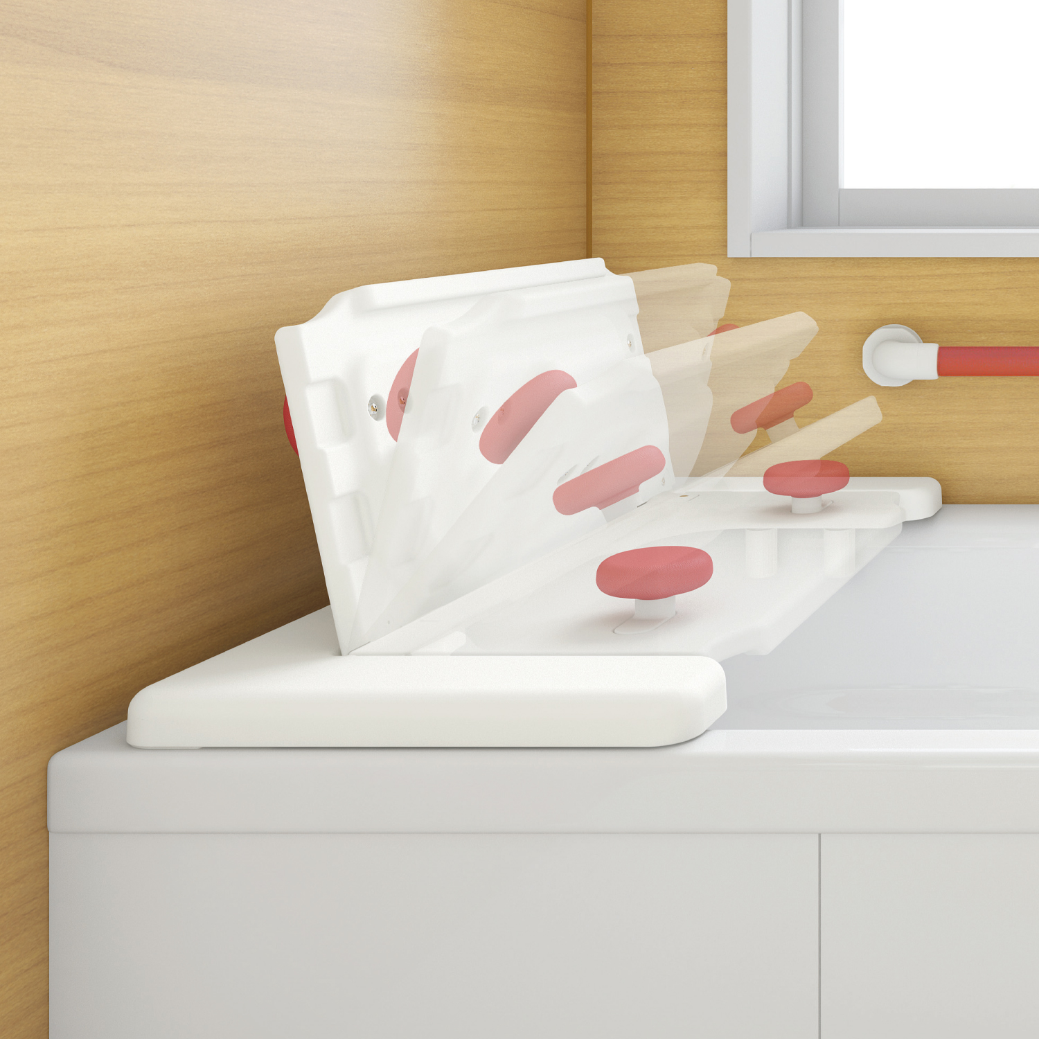 | 材質 | (座面)表面:PP/PE、芯材:アルミニウム/ポリスチレン/PE (本体)表面:PP、補強材:ステンレス (幅調節受、幅調節ネジ、固定ストッパー本体)ABS (ストッパーゴム、脚ゴム)エラストマー (グリップ)被覆材:エラストマー、芯材:PP |